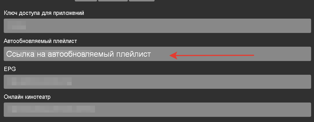 2. Вставьте туда ссылку на автообновляемый плейлист, которую вы можете скопировать из настроек в личном кабинете