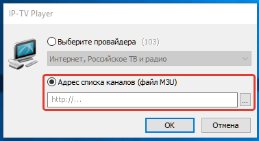 1. При первом запуске, выберите пункт "Адрес списка каналов"