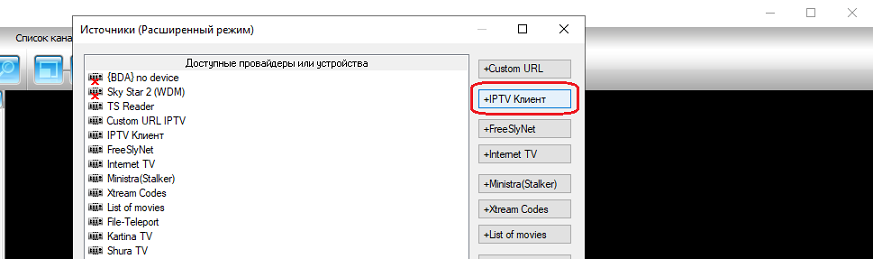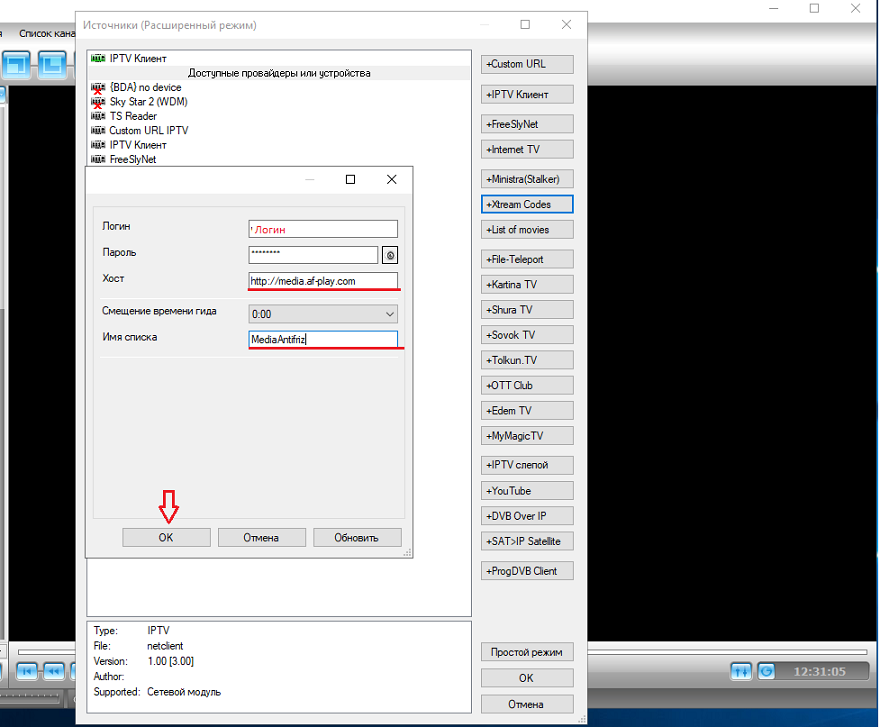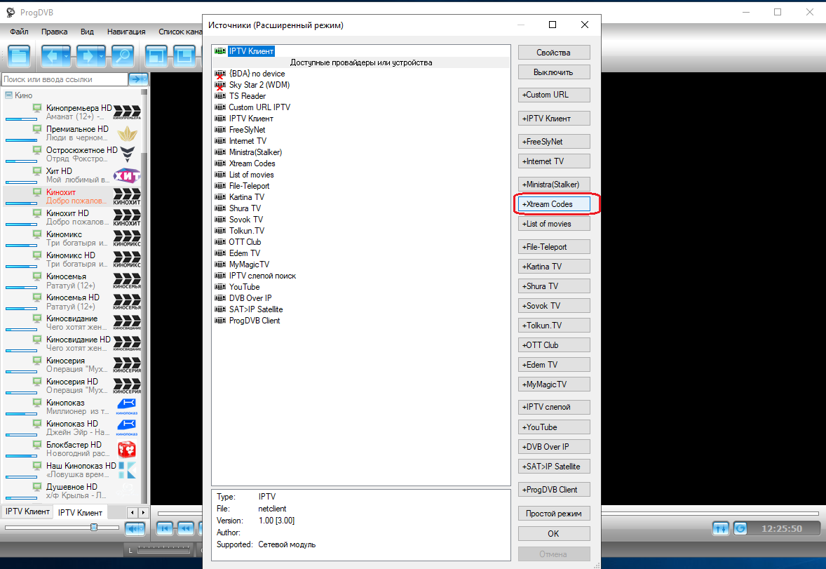 Для этого выбираем опцию: Установки - Источники - Xtream Codes
