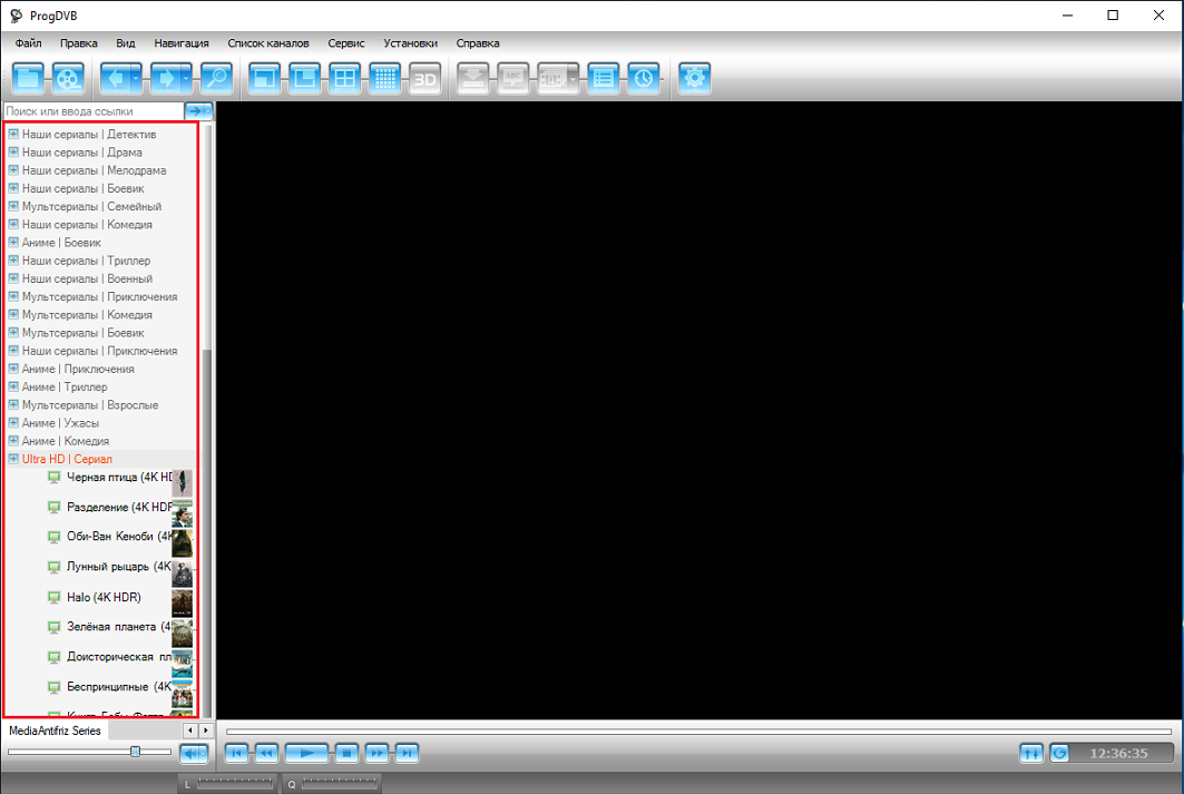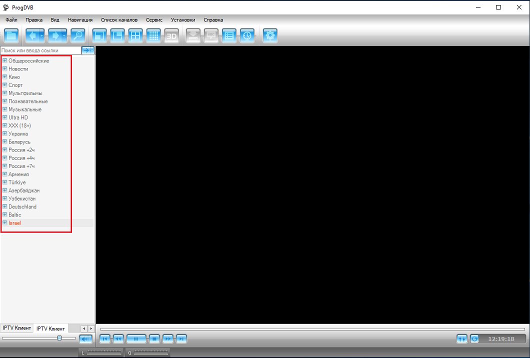 Если все указали верно, у вас загрузится список категорий с каналами: