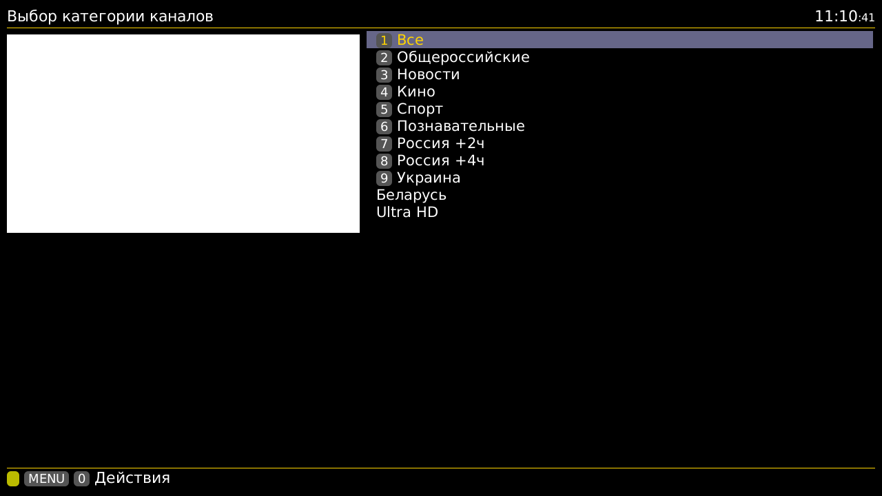 в списке каналов и в списке категорий кнопка [MENU] или кнопка [C] - по ее нажатию появляется/убирается список функций с действиями - действия работают только пока список виден