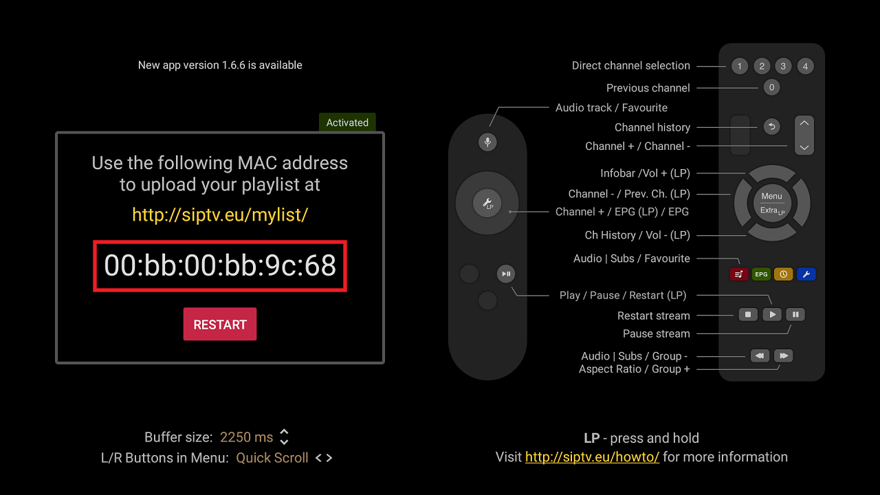 Данная программа платная, но 7 дней вы можете попробовать ее бесплатно. Если вам понравилось приложение, то вы можете приобрести его РАЗОВО оплатив 5.49 Евро на сайте производителя http://siptv.eu/activation/. Указав МАС-адрес своего ТВ и оплатив указанную сумму.