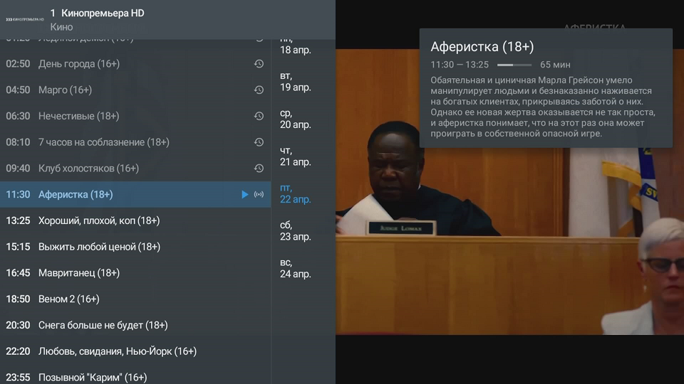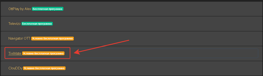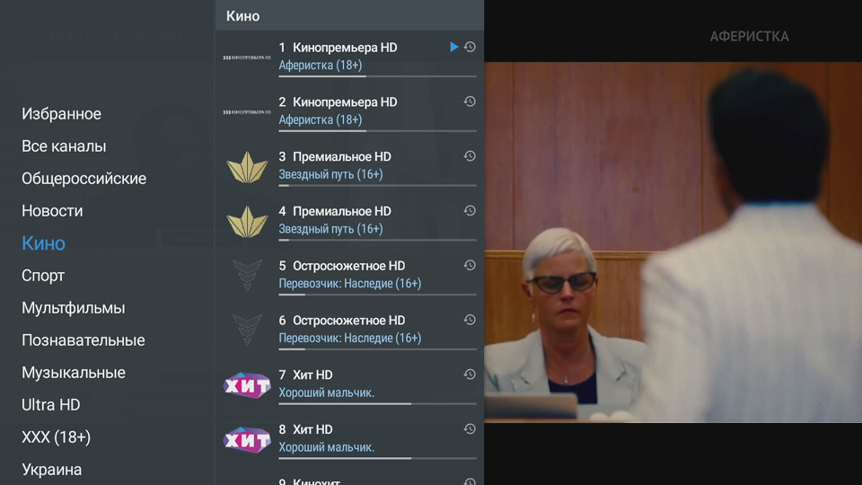 После чего загрузится список каналов с навигацией по спискам каналов, категориям и передачам из архива.
