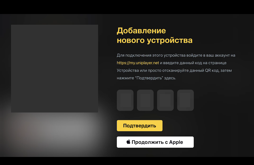- Запускаете приложение на своей приставке, смотрите промокод в приложении и добавляете устройство на сайте приложения.