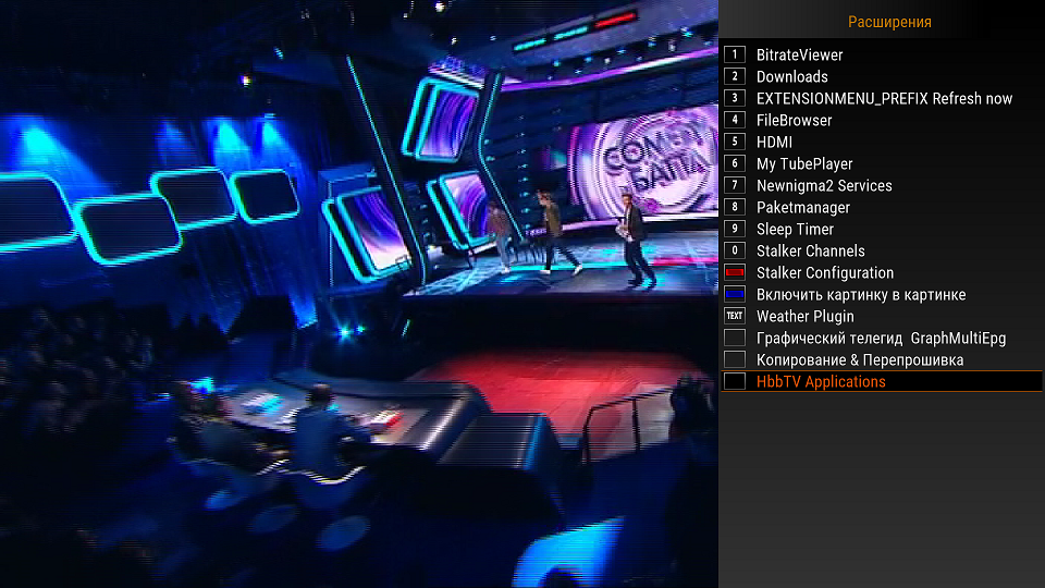 1. При установленном приложении HbbTV нужно отредактировать файл HbbTV.py в папке /usr/lib/enigma2/python/Plugins/Extensions/HbbTV а именно в инструкцию showApplicationList добавить отображение и ссылки на виджеты